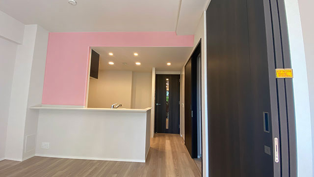 また、本ケースではカウンター部分とキッチン背面の壁紙もアクセントクロスに張替えをしています。