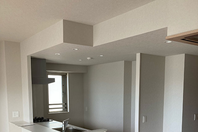 キッチンの天井部分がリビング天井よりも下がっている天井部分の張替えになります。