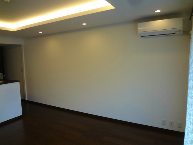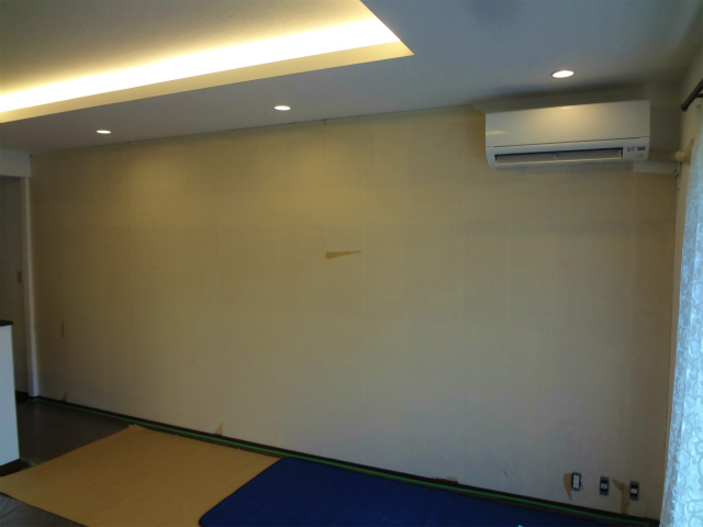 今回、ご依頼頂きましたお部屋は30帖を超えるリビングの1面をアクセントクロスに張替えたいとのご希望です。