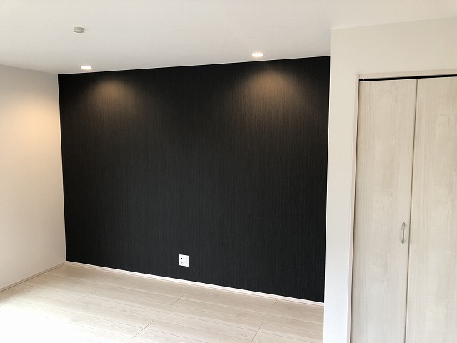 元々張ってあった黒色の壁紙よりは優しい雰囲気になりました。