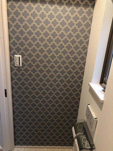 普通のトイレが壁紙を張り替えるだけで高級感あるトイレになります。