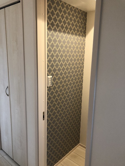 このアクセントクロス張替えと同時にトイレの張替えもご依頼頂きました。