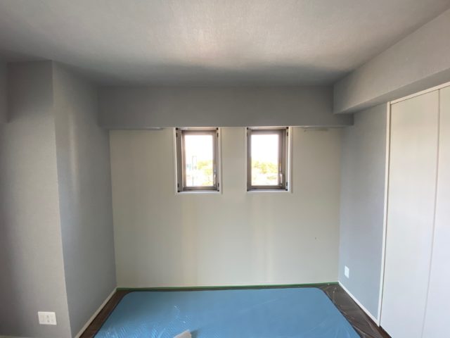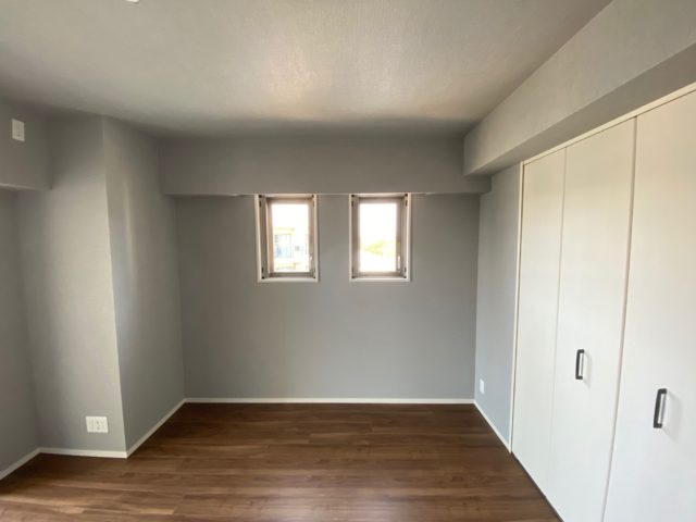 寝室予定のお部屋には元々グレーのクロス(壁紙)が張られていましたので、ホワイトベースでグレーの花柄の入ったクロス(壁紙)を採用致しました。