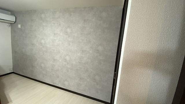 最近はブルー・グレー色のような北欧テイストの壁紙も人気がありますが、木製家具にコンクリート調やストーン調の壁紙を合わせることでナチュラルな印象を見せることが出来ます。