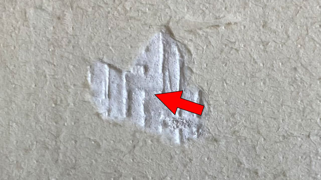 裏紙の裏側に通常であれば石膏ボードなどの下地材があるわけですが、本現場の裏紙の裏には「壁紙」(矢印部分)がありました!