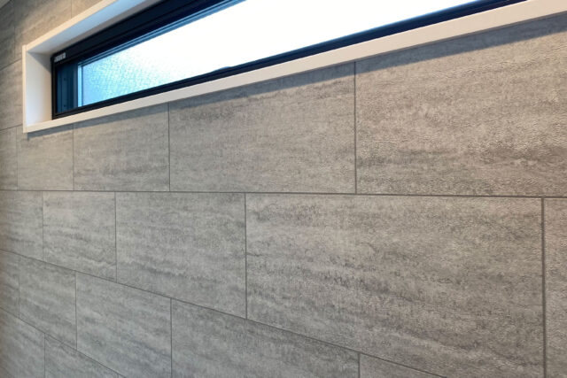 割付を計算した結果、窓を中心に張り替えることでシンメトリー的な割付になり左右のバランスが見事に合致しました。