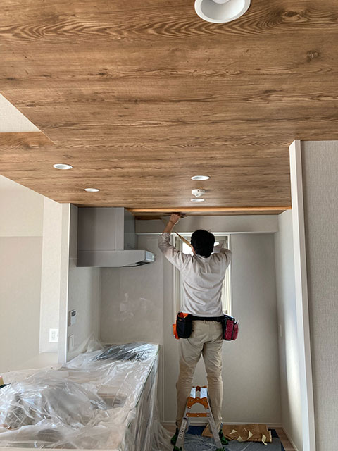 キッチンの天井張り替え作業は大変ですが張替え後のお客様の感動の声は何よりものやり甲斐を感じます。