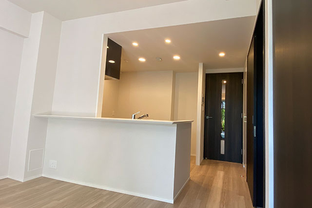 配管などの関係でキッチン部分の天井がリビング側に比べて低くなっているだけです。