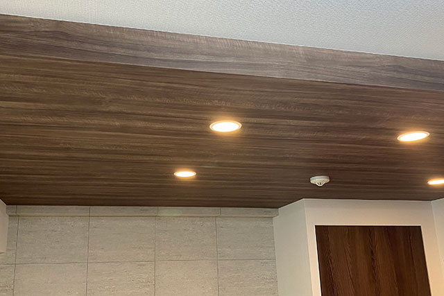 マンションの元々の下がり天井を生かして、木目のクロスを貼りたく、ネットで見つけた画像を送って依頼させてもらいました。どこの業者さんでどのようにやったのかも分からなかったのですが、こういうの出来ますか?というお願いに、やってみます!と快く対応していただき本当に有り難かったです。現地での念入りな打ち合わせを行い、満足のいく仕上がりになりました。マンションで下がり天井を諦めていた方もこの方法なら出来るんじゃないかと思います。また機会があればお願いしたいです。