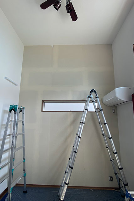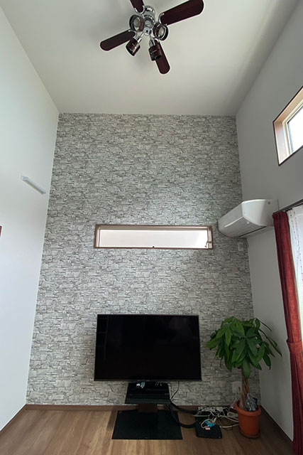 本リビングは高さが4.2Mもある吹き抜けとなっている壁面の張替えとなりました。