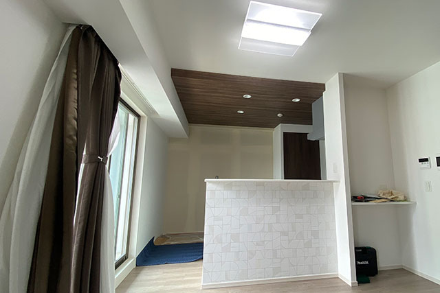 今回の張替え作業はキッチンの背面とカウンター、天井の3箇所を行っています。