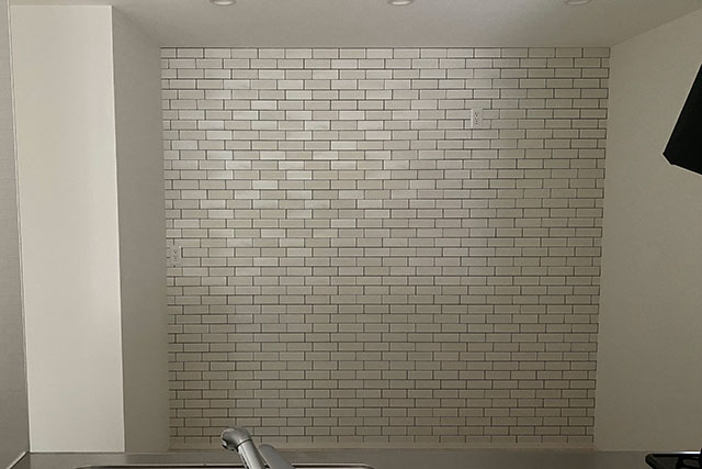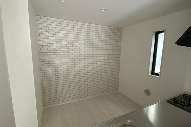 本壁紙には防カビ、防水コート機能がありますからキッチン背面には有効な壁紙機能になります。