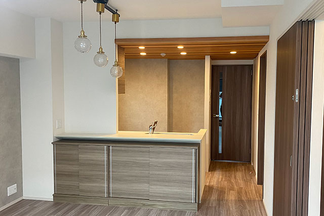 今回の張替えはキッチン天井部分と背面の張替えになります。