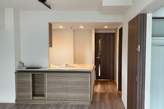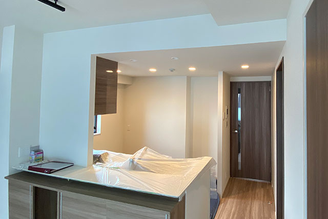 キッチンの天井張り替えを行う際には流し台などに傷や汚れが付かないように養生作業をしっかりとさせて頂いています。