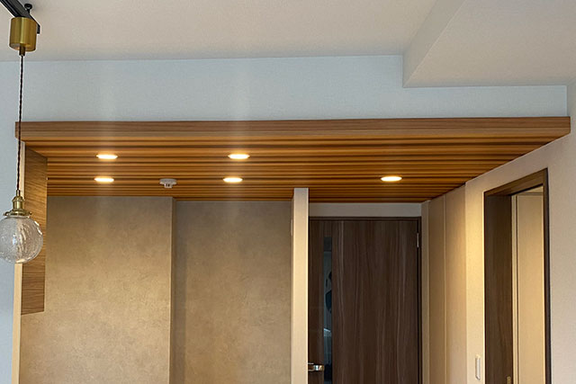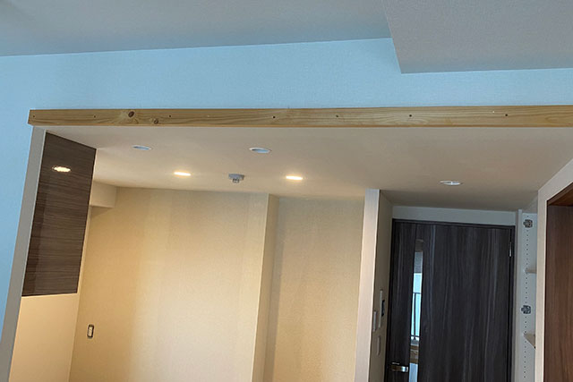 下がり天井風にするために下地材用の木材を付けます。
