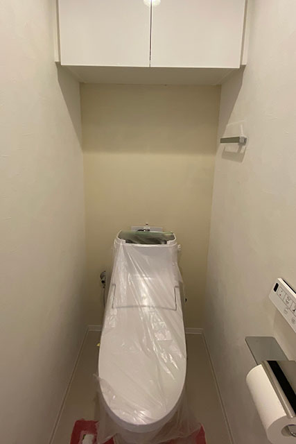 トイレの背面を張り替えます。