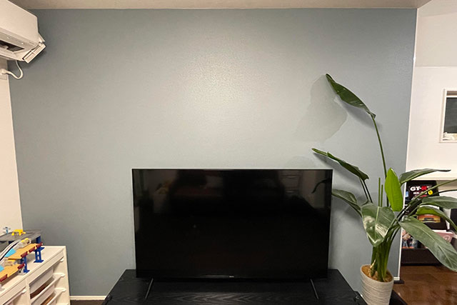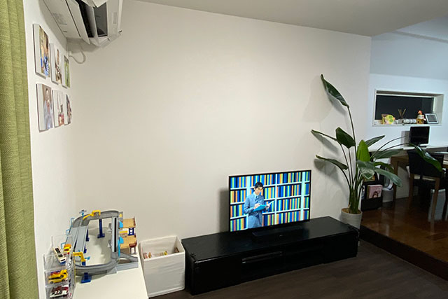 張替え前は白無地の壁紙で統一されたLDKでしたがテレビのサイズも大きくなるのに合わせて雰囲気を一新されたようです。