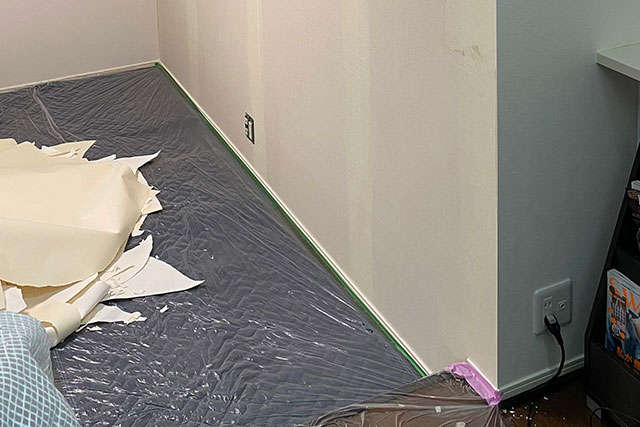| 既存壁紙めくり代 | 既存壁紙を綺麗に剥がす作業です。 |