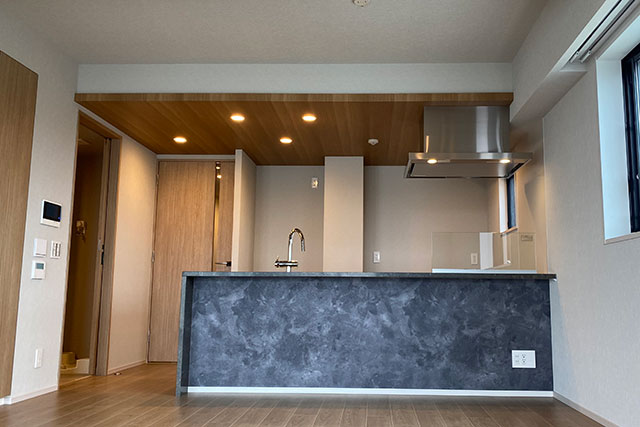 今回の張替え事例はキッチンの天井部分とカウンター部分の張替えになります。