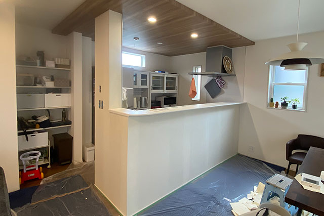 床には養生を念入りにして傷やゴミが床に残らないようにしています。