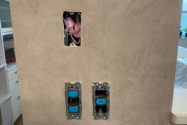 インターホンやスイッチプレートを取り外してから既存の壁紙を丁寧に剥がして行きます。
