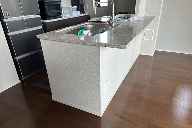 キッチンカウンター部分をサンゲツのGRID GRAND(FE76050)に張替えしました。