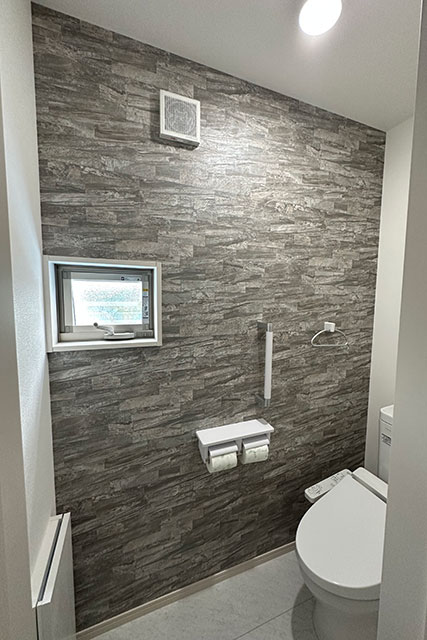 弊社はトイレのみのアクセントクロス張替え工事も承っていますが、リビングや居室などと一緒に張替え工事をご依頼頂いた場合には12,000円(税別)でトイレ一面張替え工事が可能ですのでお気軽にご相談ください。
