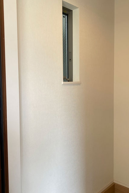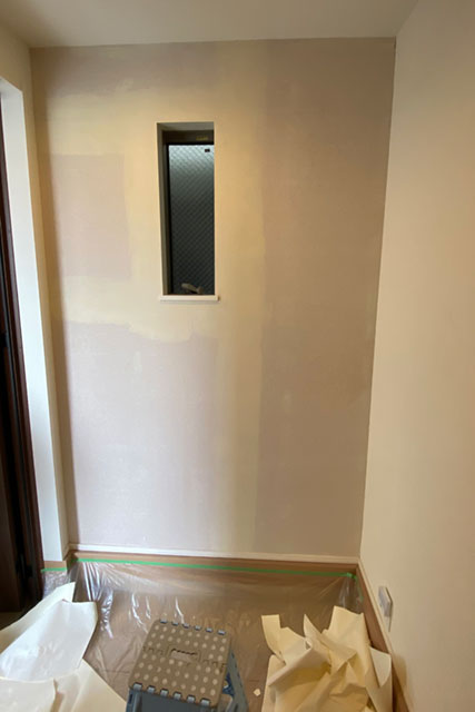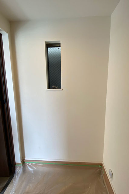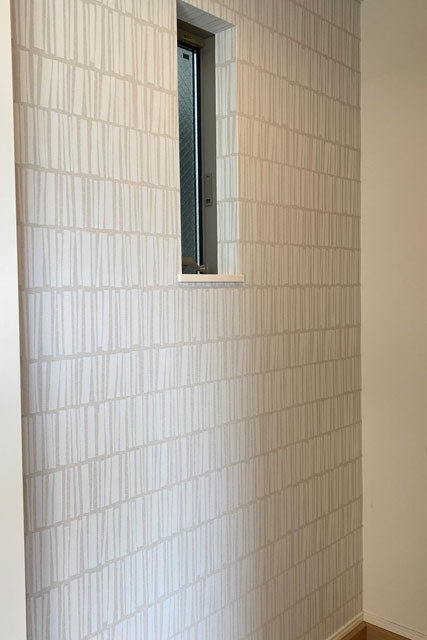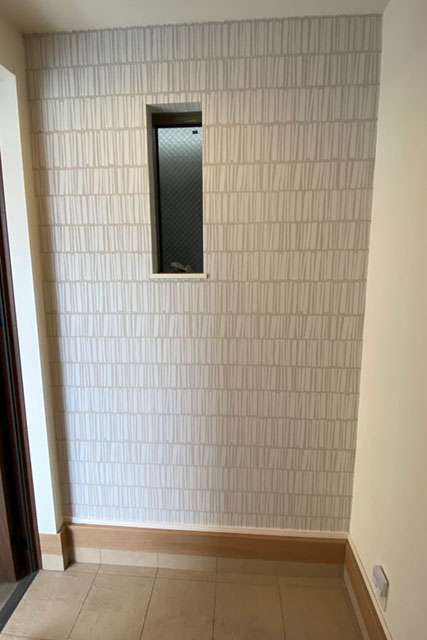今回は玄関サイド部分の壁面をアクセントクロスに張替えしました。