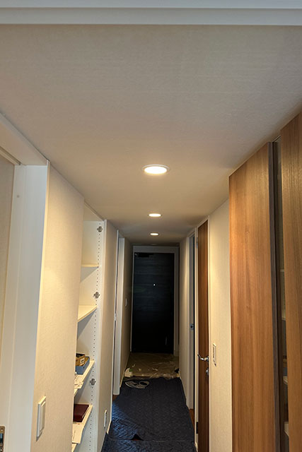 今回、張替えをさせて頂いた間取りが玄関、廊下からLDKへの動線が直線でしたので廊下天井とのバランスが絶妙に仕上がりました。