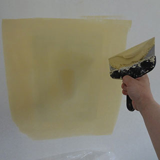 既存壁紙を剥がした後に下地に凹みや隙間があればパテで使用して補修をします。