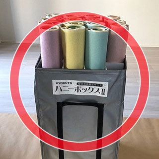 写真は糊付けした壁紙を収納したコンパクトなボックスです。